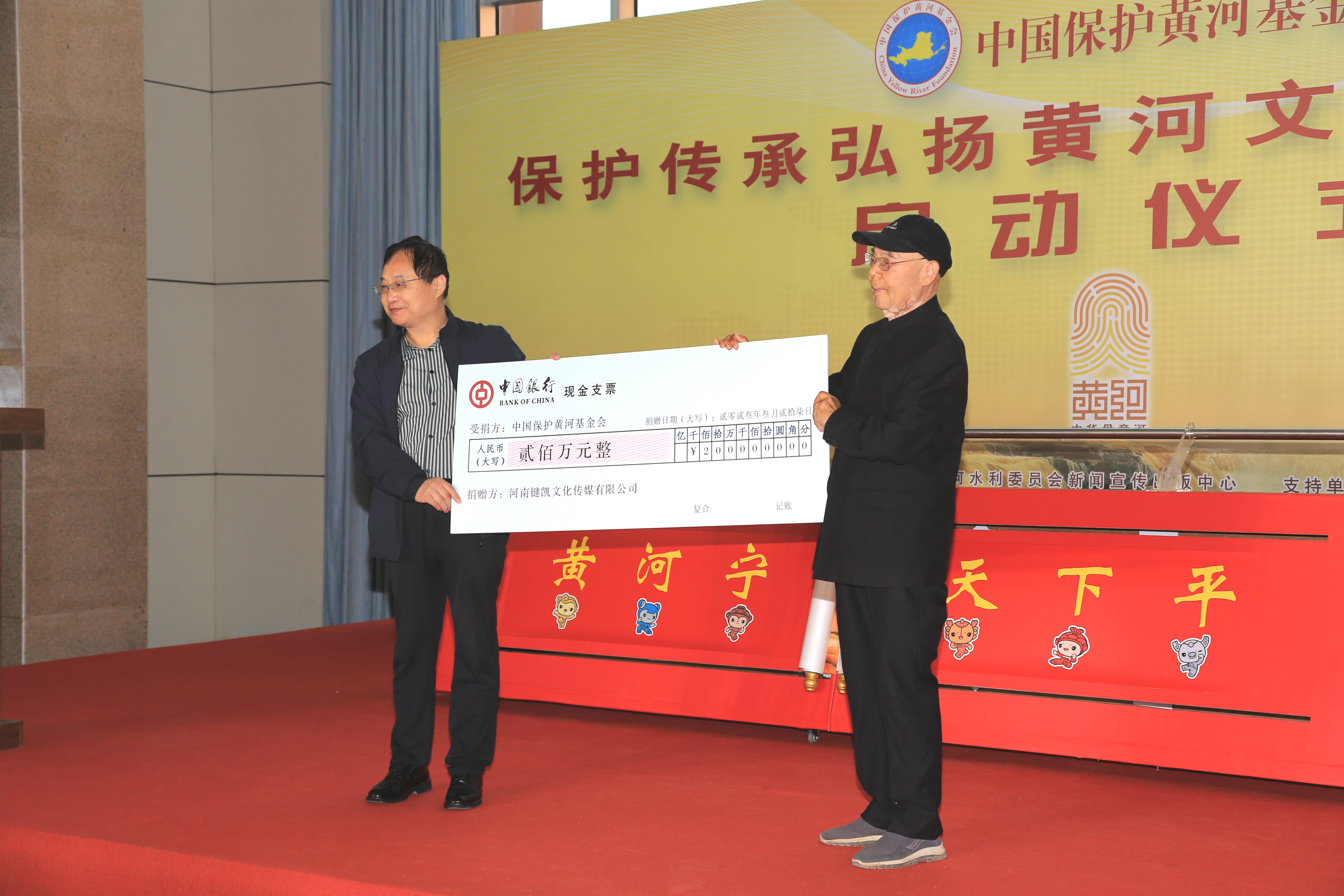 启动仪式上,河南键凯文化传媒有限公司董事长范国甫代表公司捐赠人民币200万元,河南中山画院原副院长兼秘书长潘进武捐赠个人画作——《听涛》画卷,与会嘉宾共同启动保护传承弘扬黄河文化专项基金。