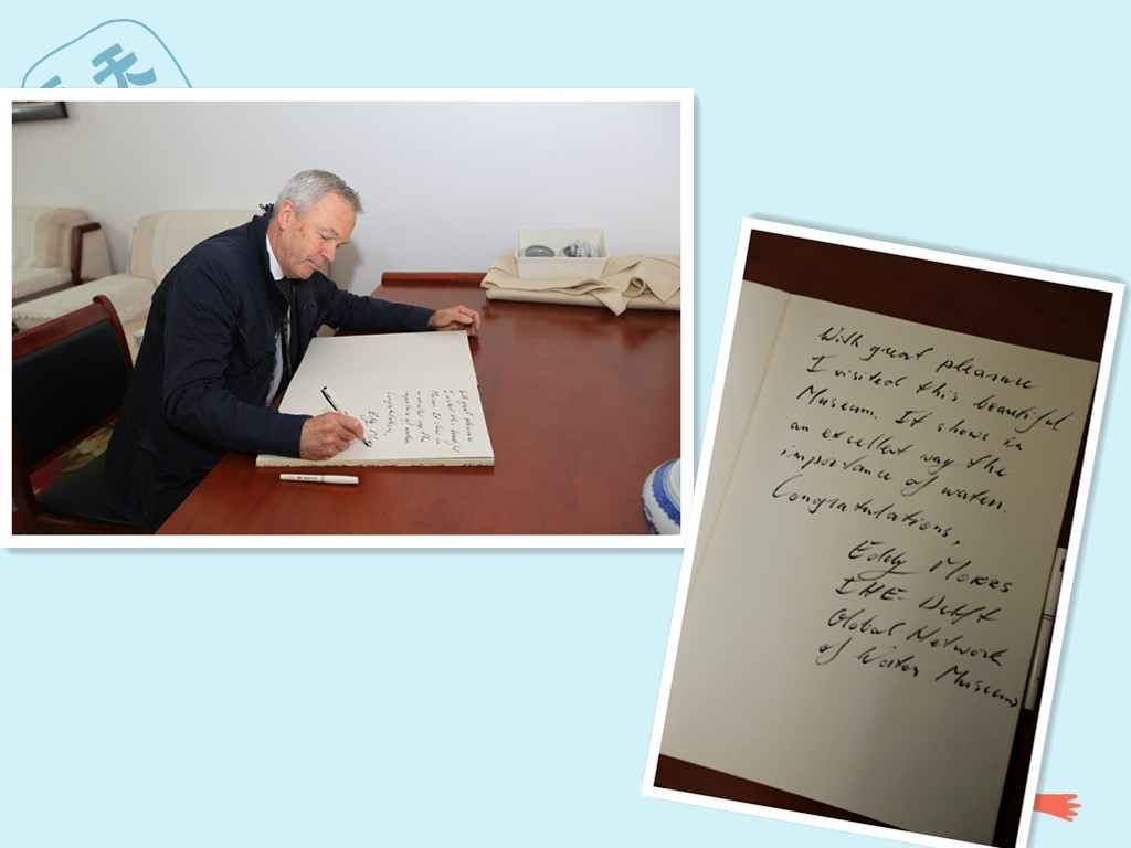 近日,全球水博物馆联盟(WAMU-NET)主席Eddy Moors先生莅临黄河博物馆参观访问。在参观过程中,Eddy Moors对黄河博物馆的展陈理念与内涵给予了高度评价,并欣然题词,表达了对博物馆未来发展的美好祝愿。