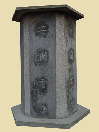 堵口始末,正面碑文由蒋中正亲笔题词“济国安澜”。由于该碑是黄河近现代史